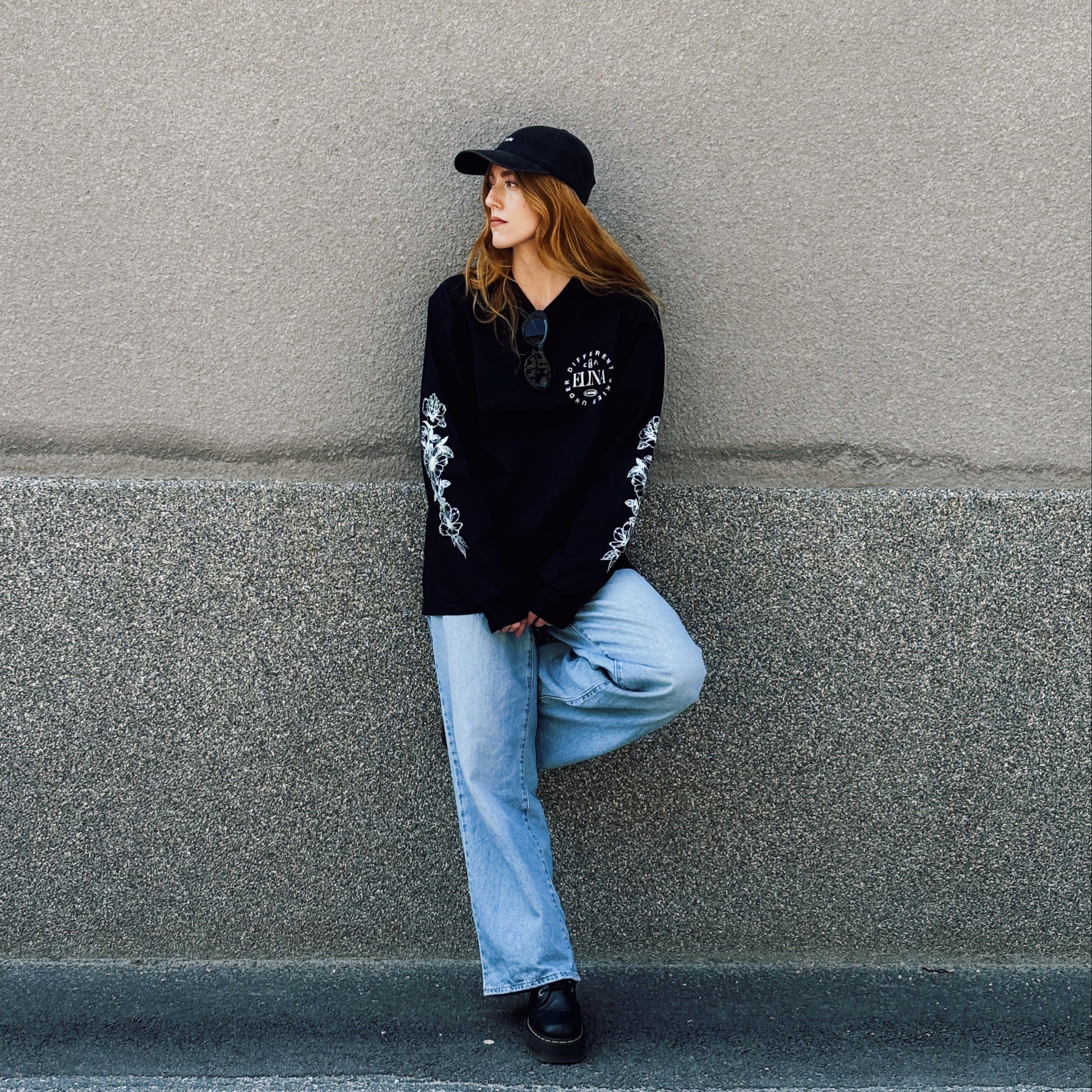 Unisex longsleeve with Elina logo on the chest and flower prints on the arms.